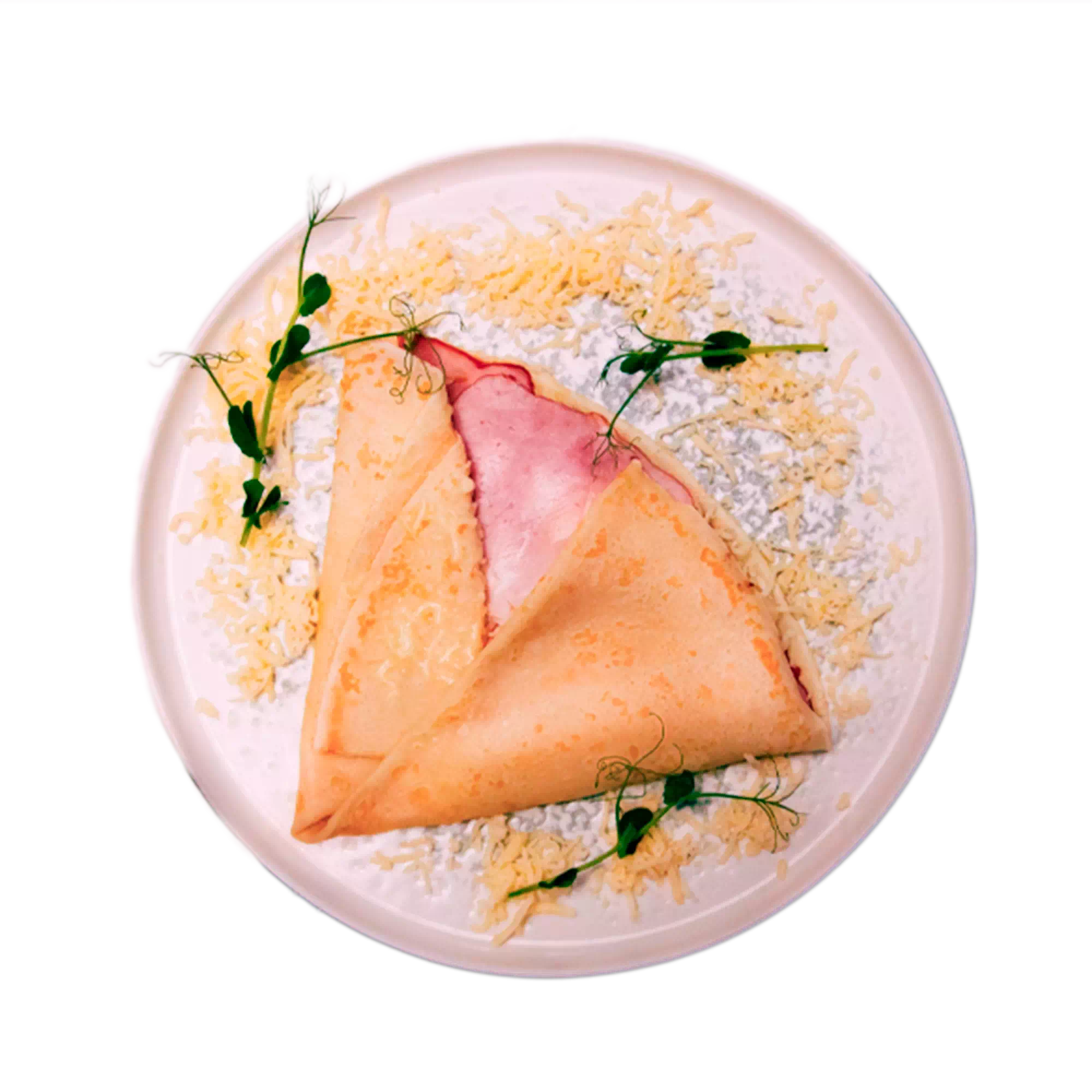 Блинчик,сыр, ветчина, соус.