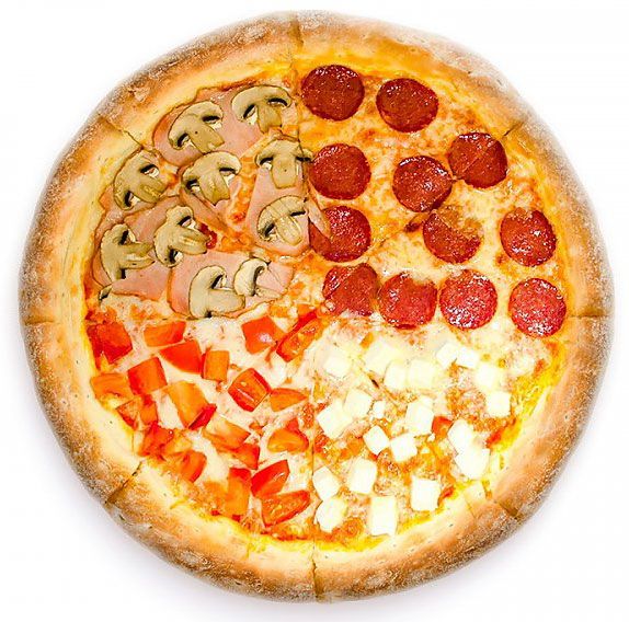 Состав: Маргарита, 4 сыра, Пеперони, Грибная.